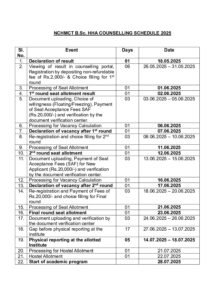 NCHMCT B.Sc. HHA COUNSELLING SCHEDULE 2025